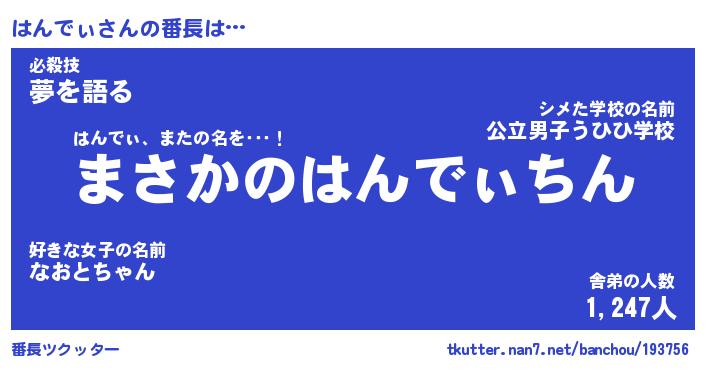 | 伝説のあだ名 | 『伝説のスナイパーはんでぃ』 |
