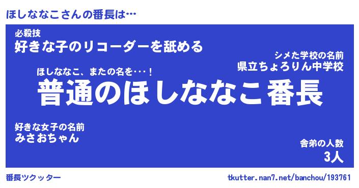 | 肩書あだ名 | 『ほしななこ御曹司』『ほしななこ班長』 |