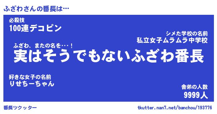 | ファンタジー風あだ名 | 『フザフェル』『エターナルフザワー』 |