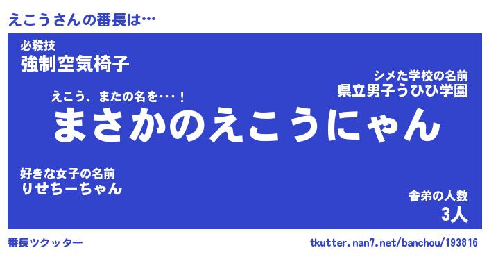 | ヘコむあだ名 | 『えこもー』『牛乳』『えこ太郎』 |
