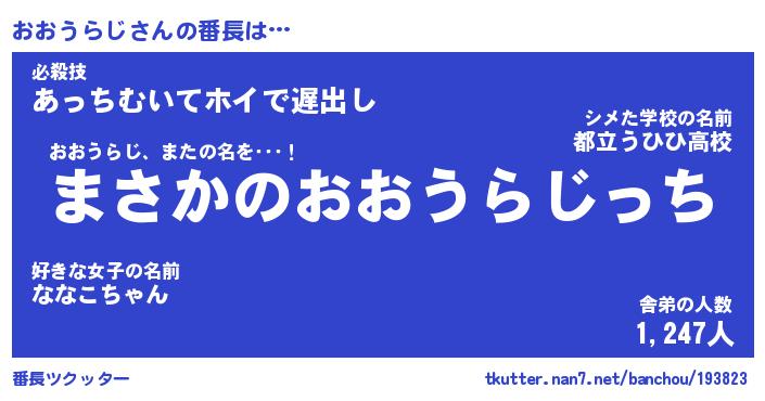 | ヒーロー風カッコイイあだ名 | 『スーパーオオウラジ』『天弓騎士オオ』 |