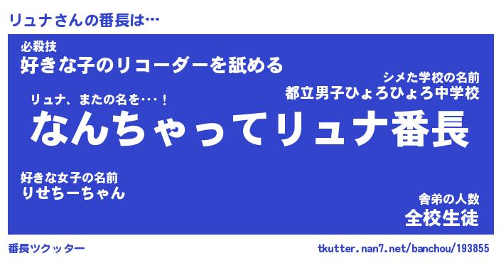 | 2回繰り返すあだ名 | 『リュリュ』『リリュュ』『うねうね』 |
