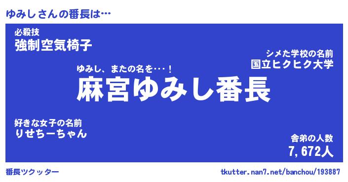 | ヒーロー風カッコイイあだ名 | 『スーパーユミシ』『ウルトラゆみしマン』 |
