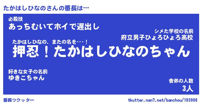 | 肩書あだ名 | 『たかはしひなの御曹司』 |