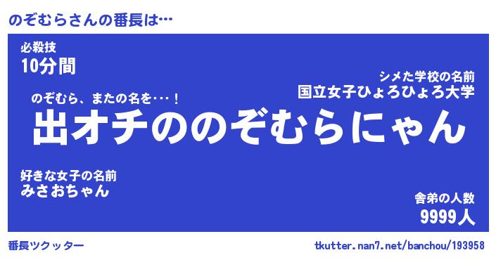 | ピコ太郎風あだ名 | 『ノコ一郎』『ピノ一郎』『ノゾ四郎』 |