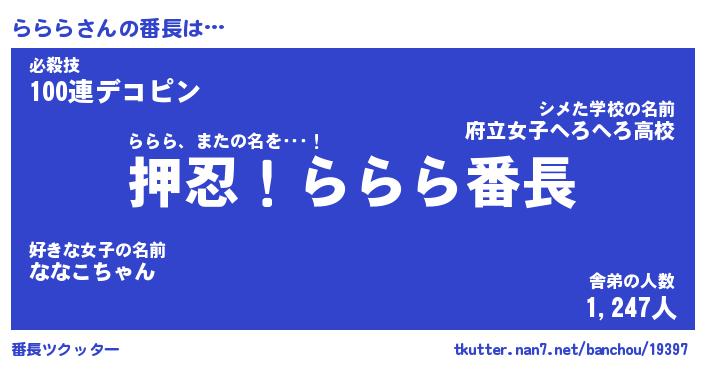 | 意味不明あだ名 | 『ペロリンららら』『らららフォーエバー』 |