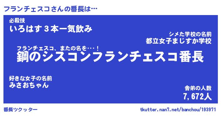 | 恥ずかしいあだ名 | 『プリティーフランチェスコ』『フラちん』 |