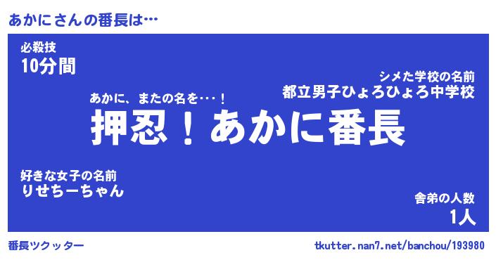 | ヒーロー風カッコイイあだ名 | 『スーパーアカニ』『ウルトラあかにマン』 |