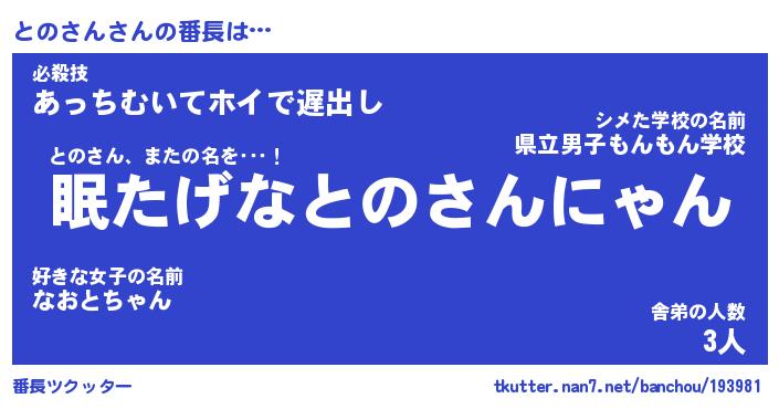 | ファンタジー風あだ名 | 『トノフェル』『エターナルトノサンー』 |