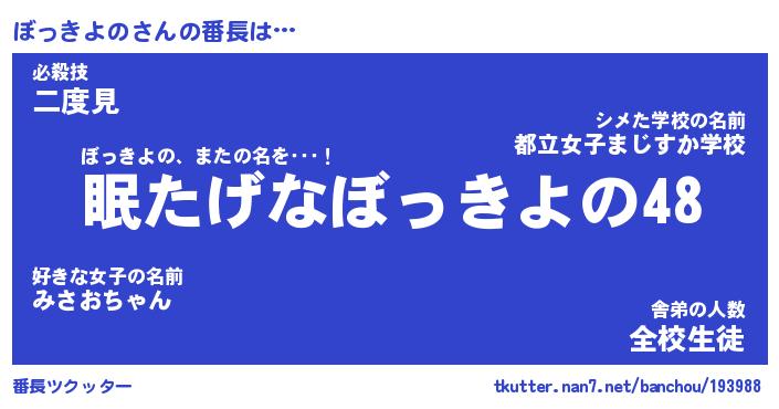 | ファンタジー風あだ名 | 『ボッフェル』『エターナルボッキヨノー』 |