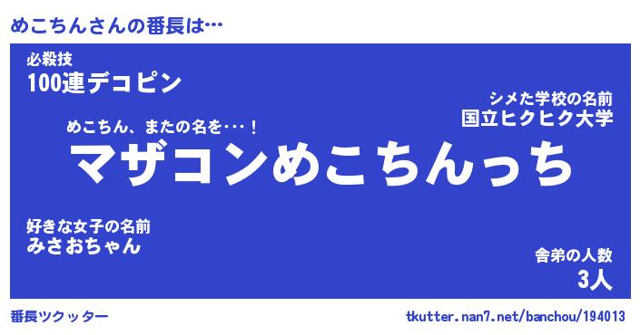 | ヒーロー風カッコイイあだ名 | 『スーパーメコチン』『炎刃騎士メコ』 |