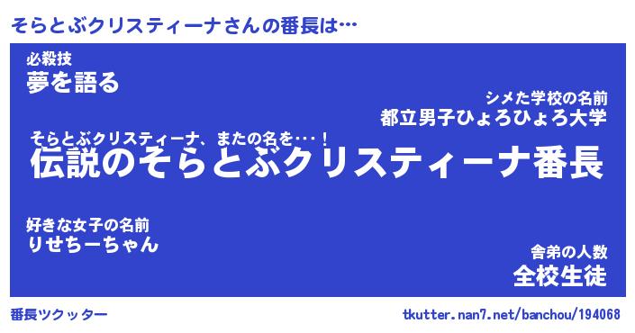 | ツイッター | そらとぶクリスティーナさんのツイッターID『konnyaku_kun』 |