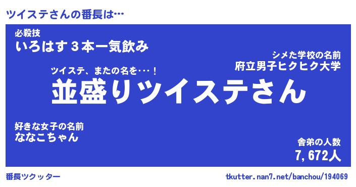 | ヘコむあだ名 | 『ツイもー』『なまこ酢』『ツイっぺ』 |