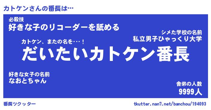 | 意味不明あだ名 | 『ペロリンカトケン』『永久保存カトケン』 |