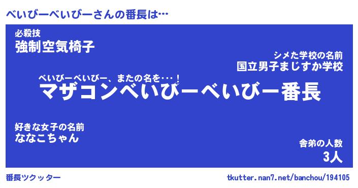 | 2回繰り返すあだ名 | 『べいべい』『べべいい』『おやおや』 |
