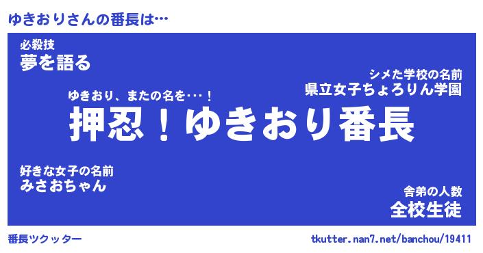 | 肩書あだ名 | 『ゆきおり社長』『ゆきおり総理大臣』 |