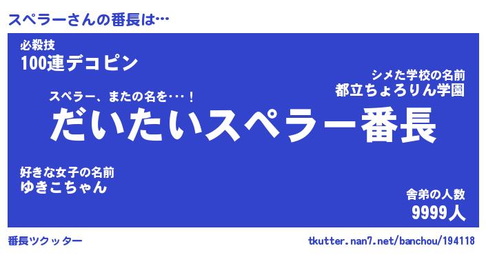 | 意味不明あだ名 | 『ペロリンスペラー』『永久保存スペラー』 |
