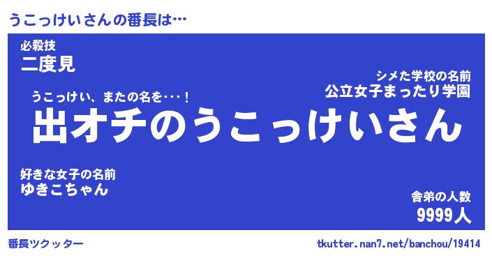 | ファンタジー風あだ名 | 『ウコフェル』『エターナルウコッケイー』 |