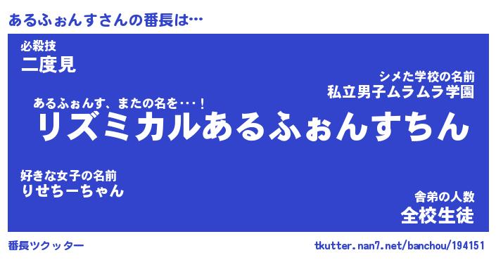 | 肩書あだ名 | 『あるふぉんす店長』『あるふぉんす団長』 |