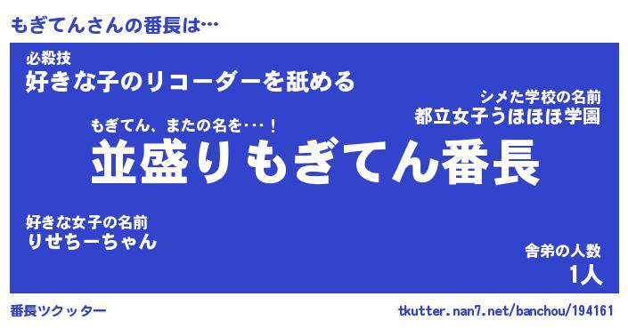 | 肩書あだ名 | 『もぎてん社長』『もぎてん国家主席』 |
