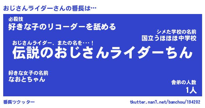 | ヒーロー風カッコイイあだ名 | 『スーパーオジサンライダー』 |