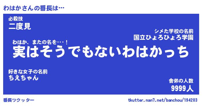 | ヒーロー風カッコイイあだ名 | 『スーパーワハカ』『ウルトラわはかマン』 |