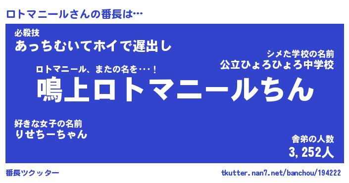 | ポケモン風あだ名 | 『ロトチュウ』『ロトマダネ』 |