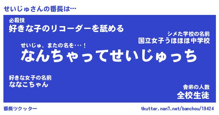 | 意味不明あだ名 | 『ペロリンせいじゅ』『永久保存せいじゅ』 |