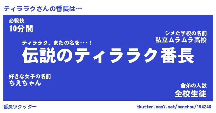 | 肩書あだ名 | 『ティララク社長』『ティララク大統領』 |