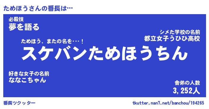 | ヒーロー風カッコイイあだ名 | 『スーパータメホウ』『銀牙騎士タメ』 |