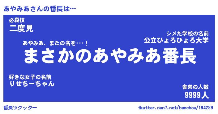 | 意味不明あだ名 | 『ペロリンあやみあ』『永久保存あやみあ』 |