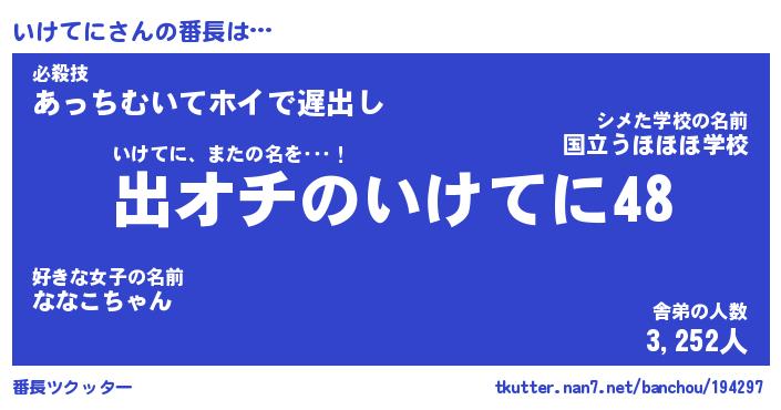 | 意味不明あだ名 | 『ペロリンいけてに』『永久保存いけてに』 |