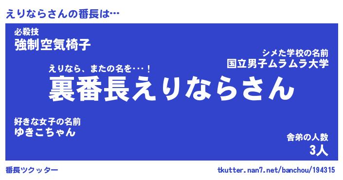 | ヘコむあだ名 | 『えりもー』『牛乳』『えりっぺ』 |