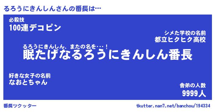 | 2回繰り返すあだ名 | 『るろるろ』『るるろろ』『ぬらぬら』 |