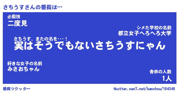 | 肩書あだ名 | 『さちうす御曹司』『さちうす大統領』 |