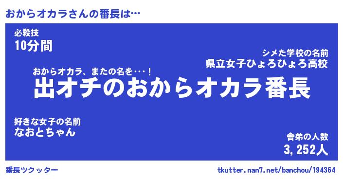 | ヘコむあだ名 | 『おかにー』『豆乳』『おかっ子』 |