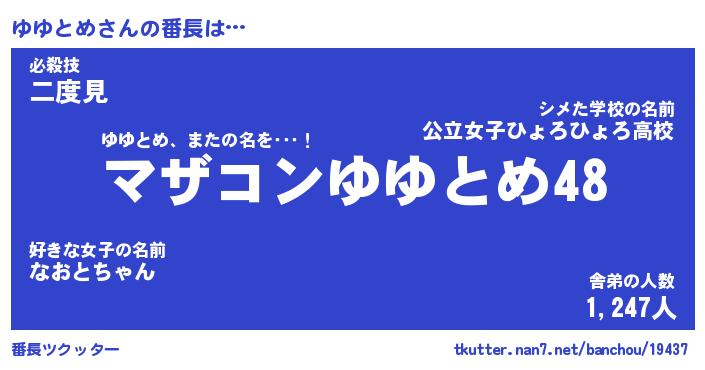 | ファンタジー風あだ名 | 『ユユフェル』『エターナルユユトメー』 |