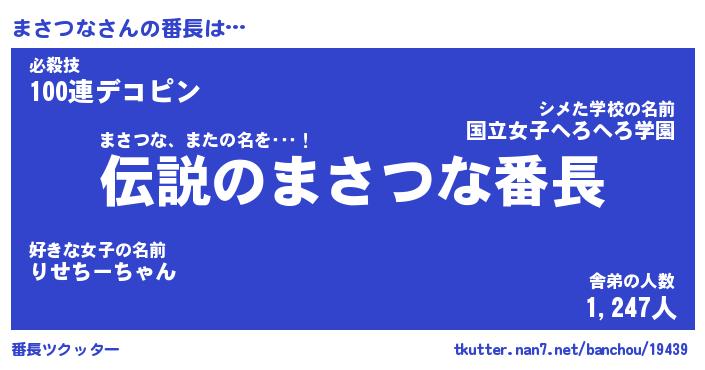 | 意味不明あだ名 | 『ペロリンまさつな』『永久保存まさつな』 |
