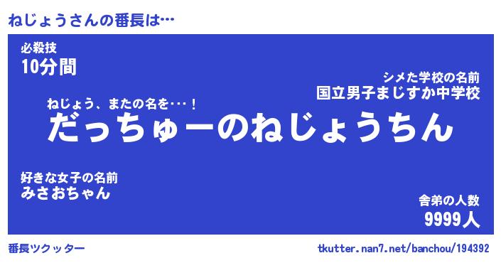 | ファンタジー風あだ名 | 『ネジフェル』『エターナルネジョウー』 |