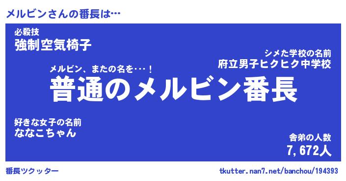 | 意味不明あだ名 | 『ペロリンメルビン』『永久保存メルビン』 |