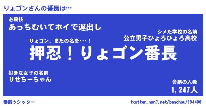 | ファンタジー風あだ名 | 『リョフェル』『エターナルリョゴンー』 |