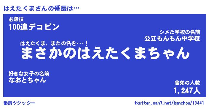 | 2回繰り返すあだ名 | 『はえはえ』『ははええ』『ぐにぐに』 |