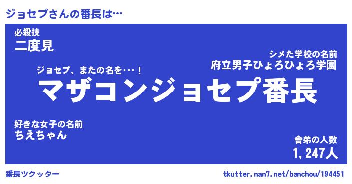 | 意味不明あだ名 | 『ペロリンジョセプ』『永久保存ジョセプ』 |