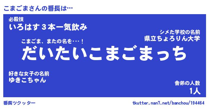 | ファンタジー風あだ名 | 『コマフェル』『エターナルコマゴマー』 |