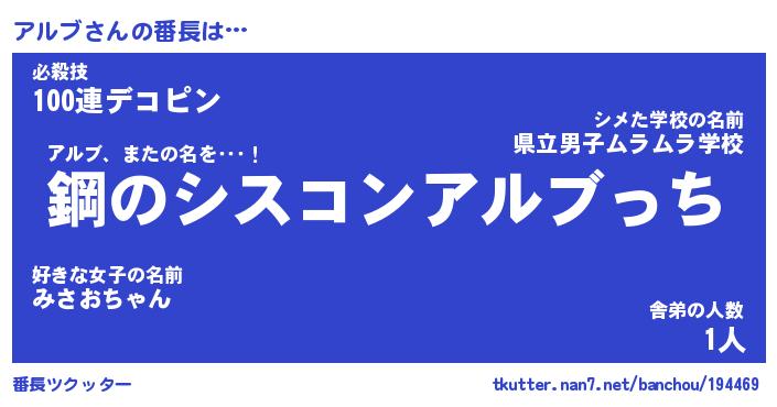 | ヒーロー風カッコイイあだ名 | 『スーパーアルブ』『ウルトラアルブマン』 |