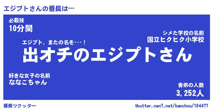 | 欧米人風あだ名 | 『マイケルエジプト』『ウサインエジプト』 |