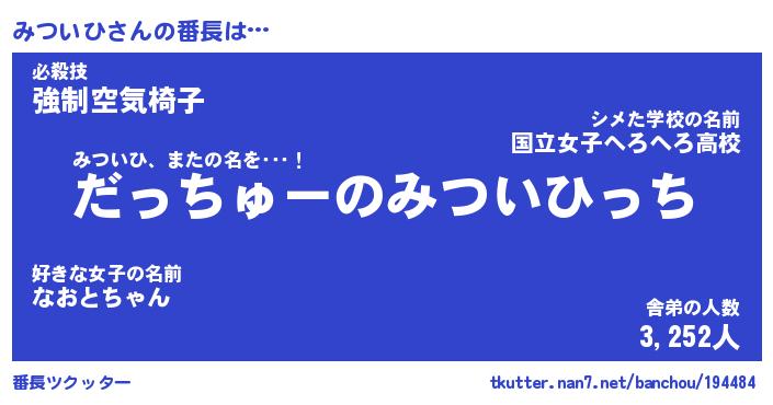 | ヘコむあだ名 | 『みつにー』『豆乳』『みつっぺ』 |