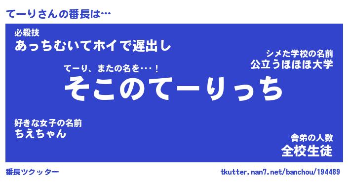 | 肩書あだ名 | 『てーり社長』『てーり総理大臣』 |