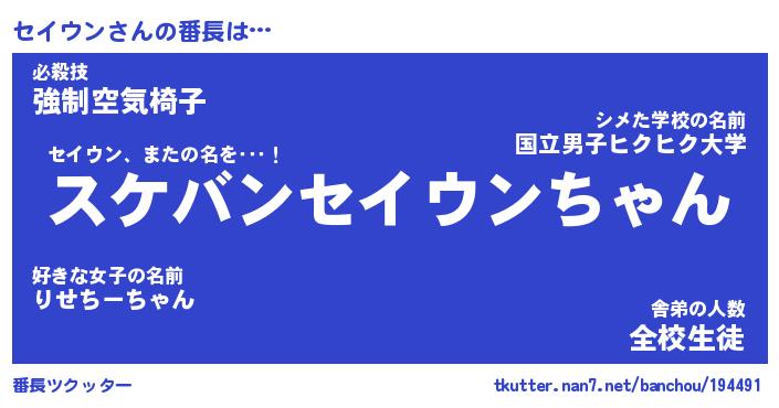| ポケモン風あだ名 | 『セイチュウ』『セイウダネ』 |