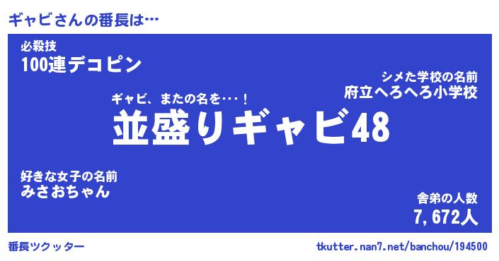 | ピコ太郎風あだ名 | 『ギコ三郎』『ピギ太郎』『ギャ史郎』 |